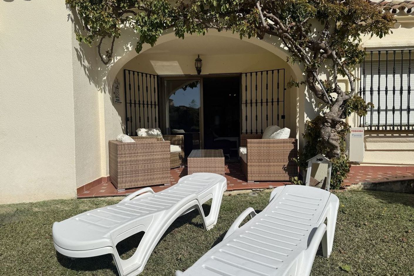Det välskötta bostadsområdet erbjuder stora gräsmattor, subtropiska växter och en vacker gemensam pool.