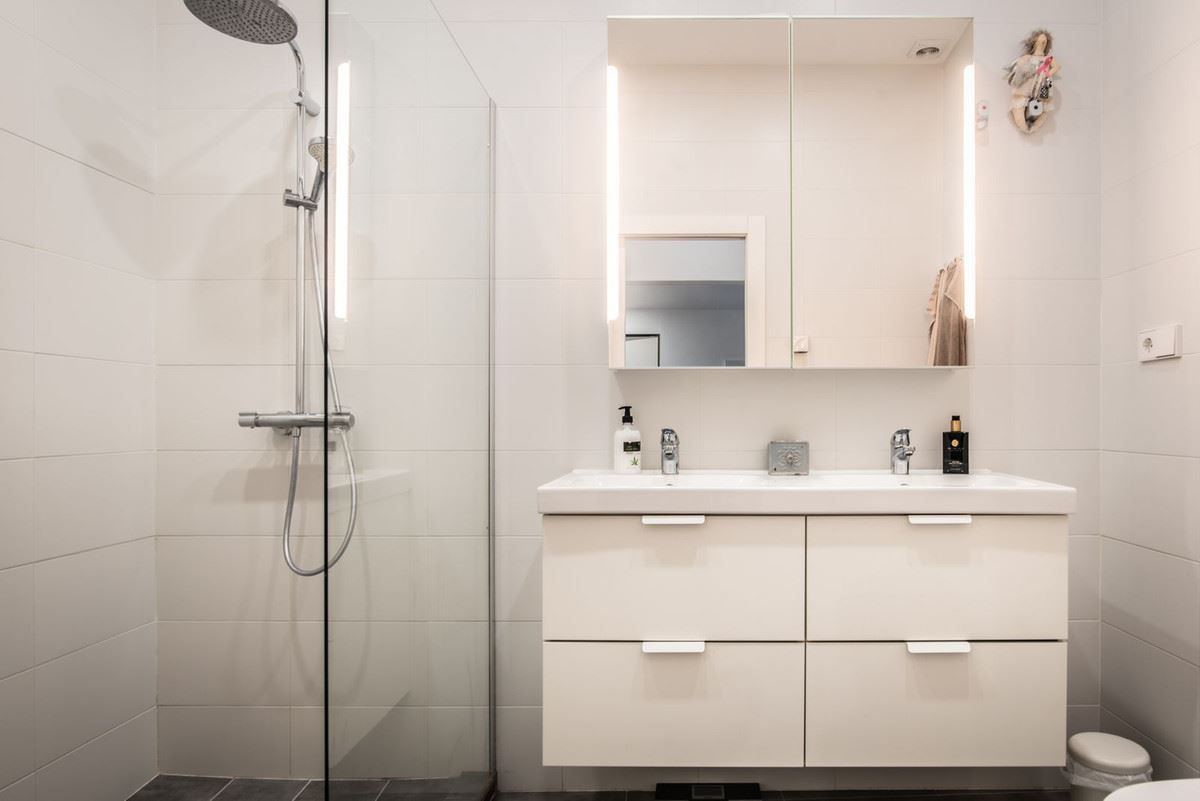 Lägenheten har två sovrum och två badrum, ett sovrum med inbyggda garderober och ett eget badrum med stor dusch, samt ett extra sovrum i anslutning till ett badrum med dusch. Dubbelsängar kan fås i båda sovrummen. Ny luftkonditionering installerades i lägenheten 2020.