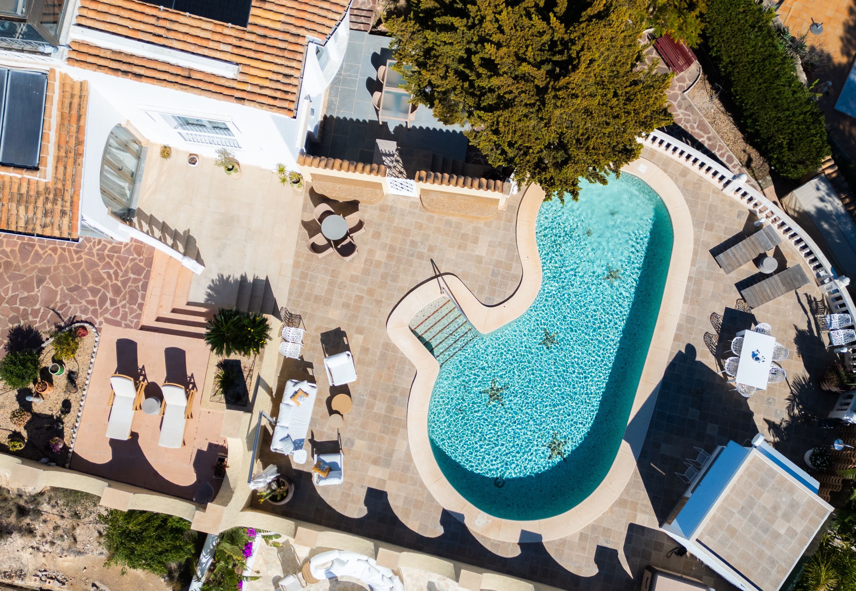 Villan totalrenoverades 2022 med material av hög kvalitet och i en elegant medelhavsstil. Den är fördelad över 3 våningar och utformad för att maximera ljus, utsikt och komfort. Nästan alla rum har en fantastisk havsutsikt. De generösa sällskapsytorna öppnar upp mot rymliga terrasser och en vackert anlagd trädgård, vilket skapar ett harmoniskt samspel mellan inne- och utemiljö. På den nedre våningen finns dessutom ett extra vardagsrum med kök samt flera rum som kan användas flexibelt, perfekt för gäster eller familj. Fastigheten erbjuder även en saltvattenpool, bastu med havsutsikt och flera loungeytor utomhus.