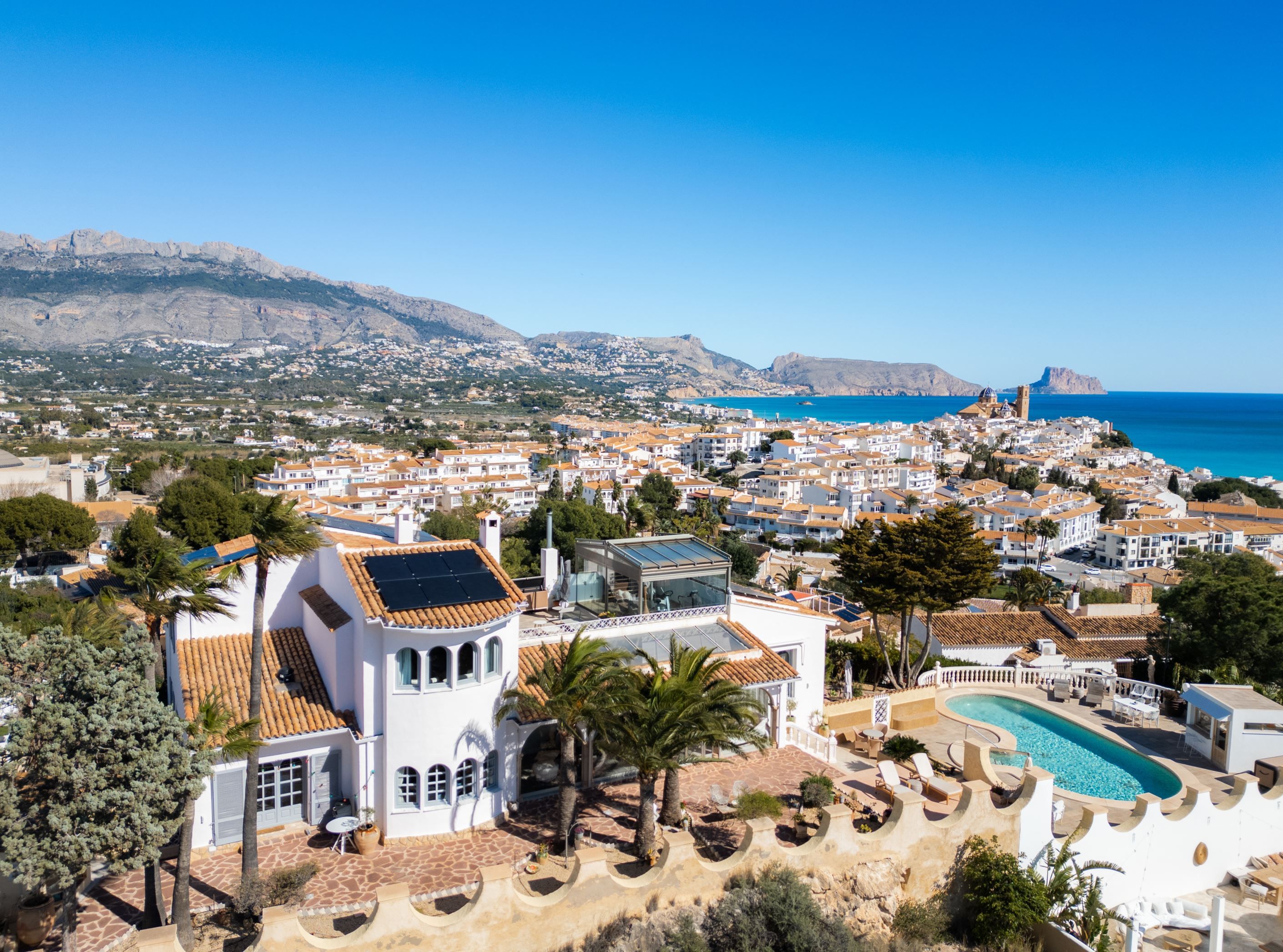 Villan ligger på en privat tomt i ett lugnt och tryggt bostadsområde med perfekt sydläge, vilket ger sol hela dagen året runt. Fastigheten erbjuder även garage, generösa bostadsytor och en sällsynt kombination av livsstil, utsikt och läge – bara några minuter från hjärtat av Altea och samtidigt omgiven av natur och Medelhavets skönhet.
