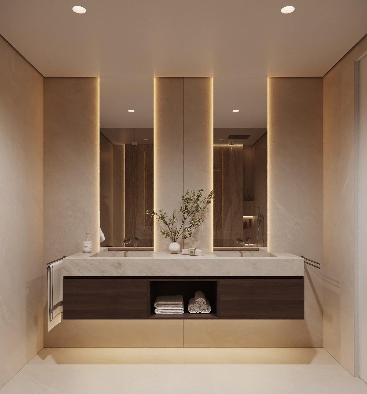 Badrum med möbler och elektrisk golvvärme