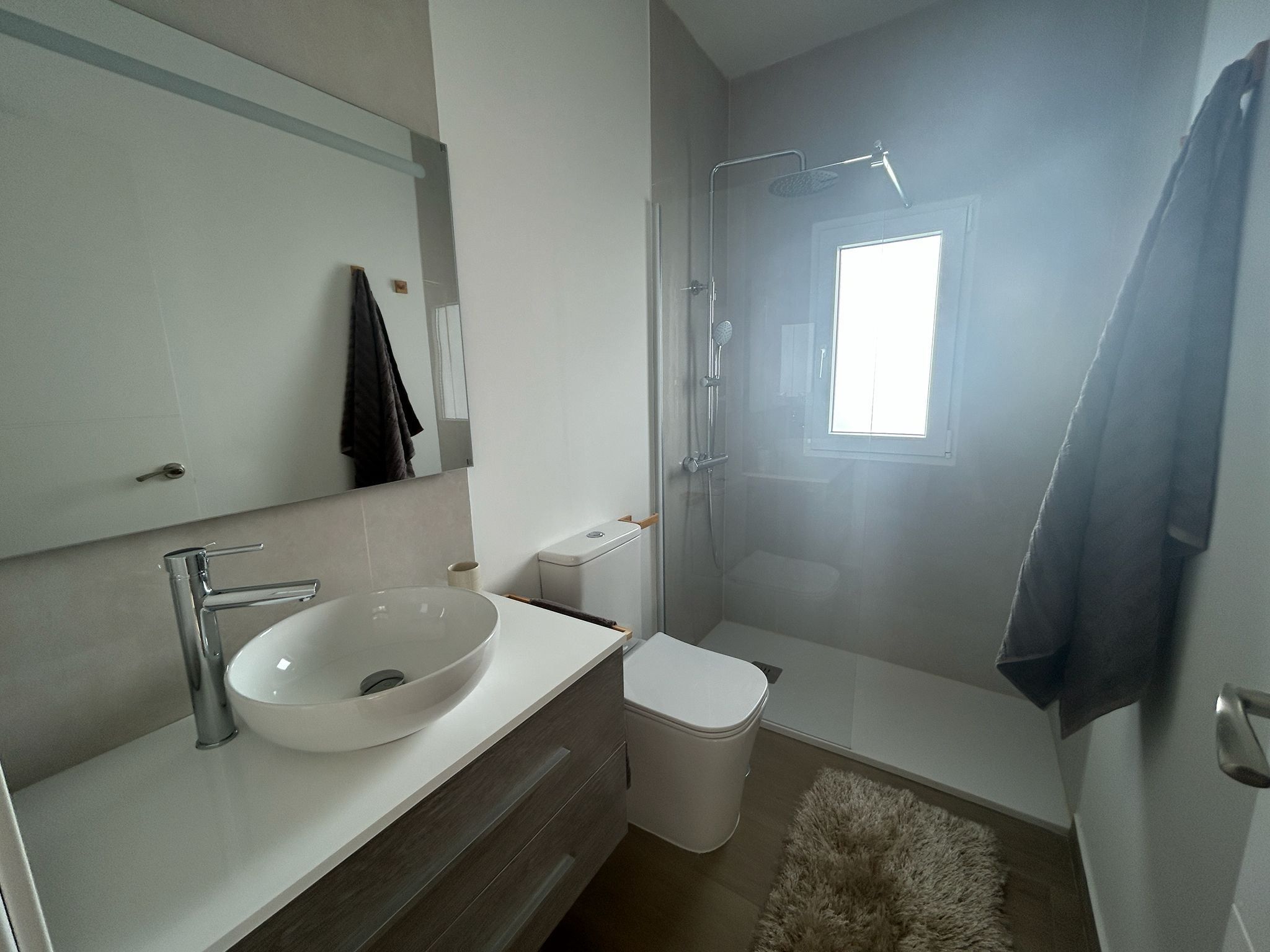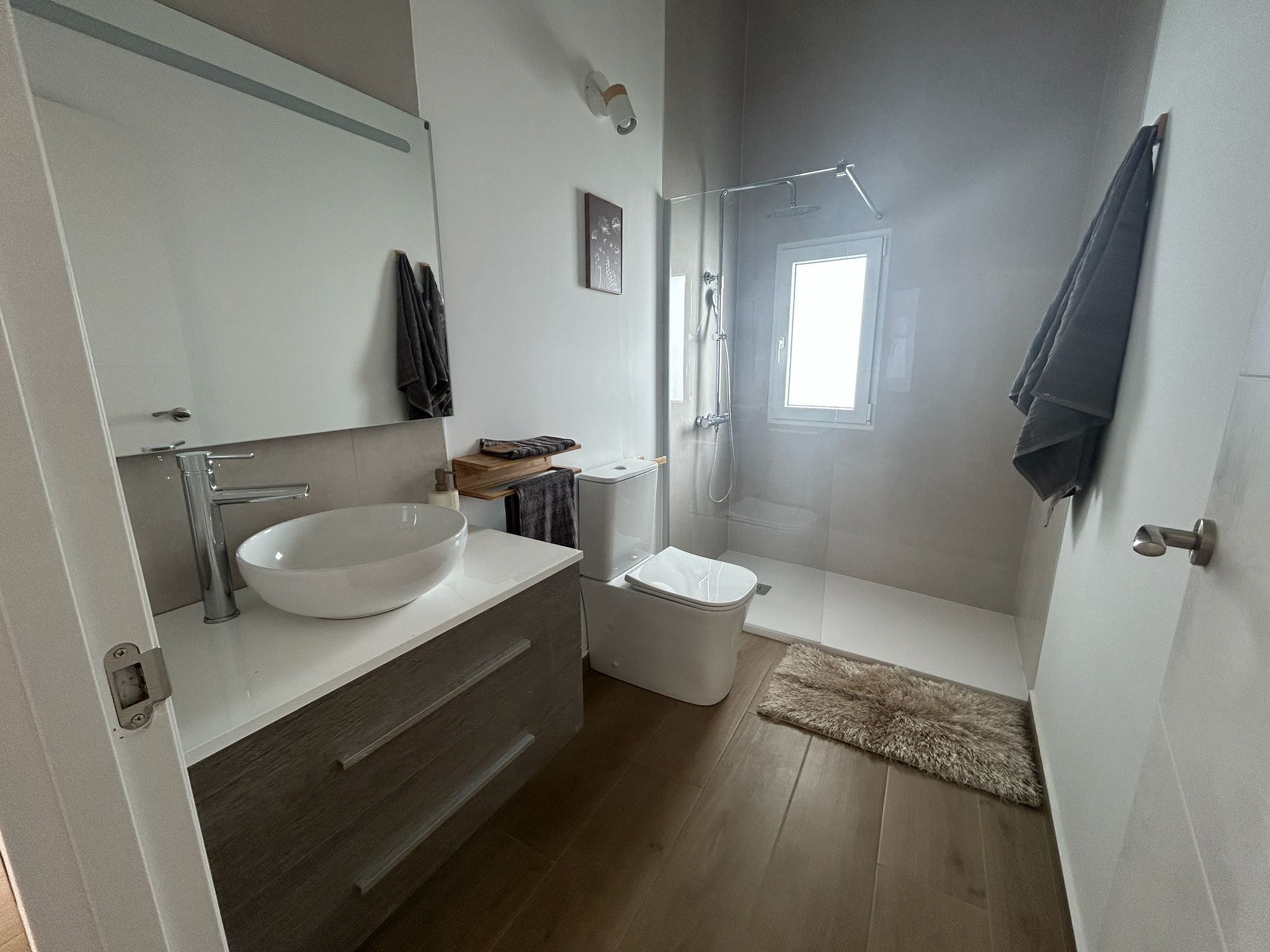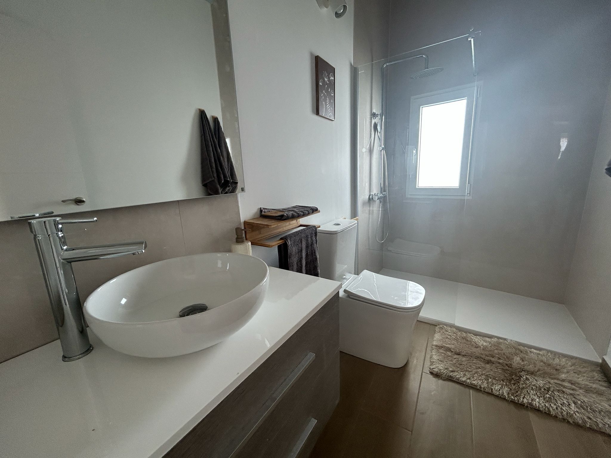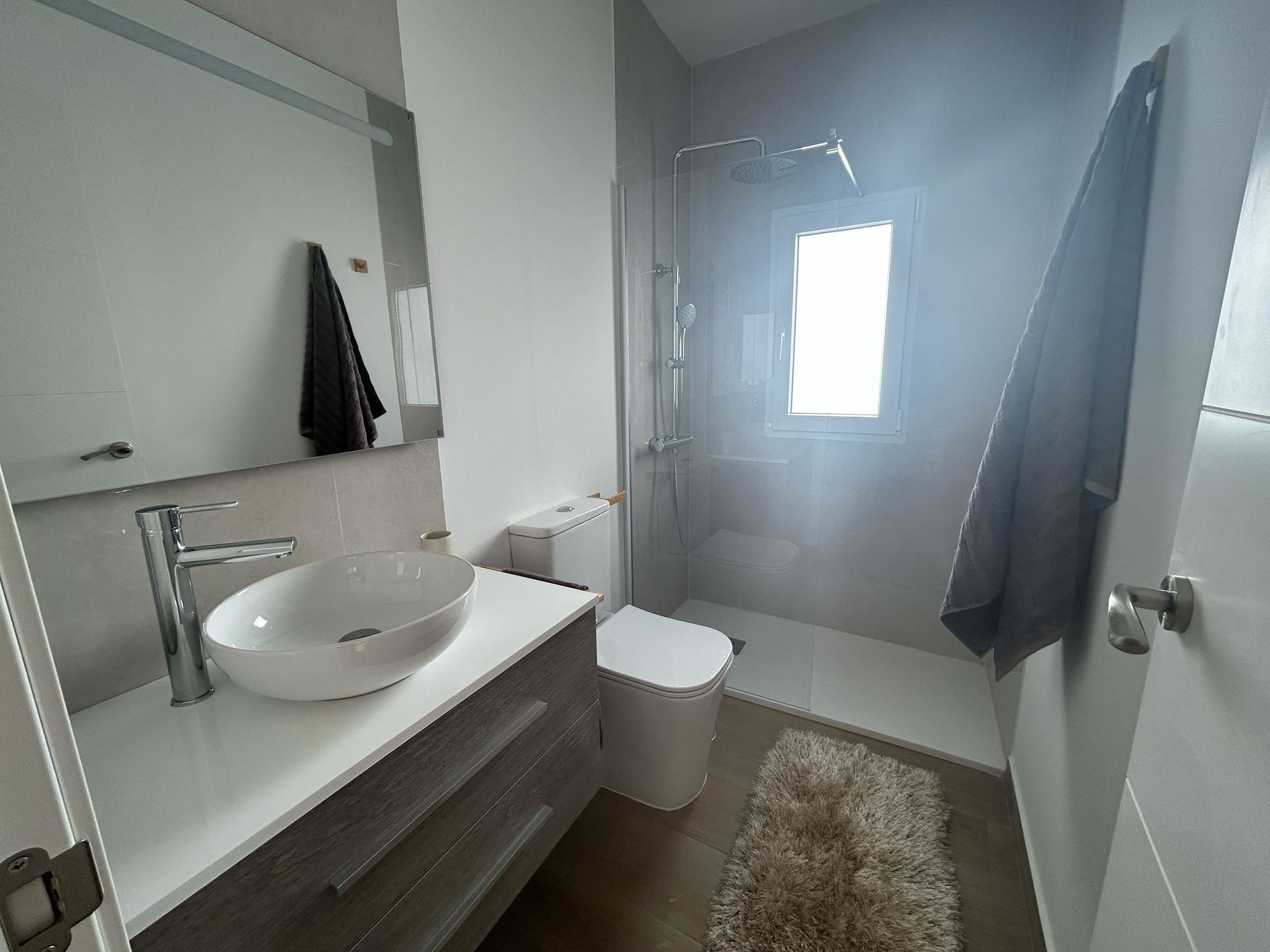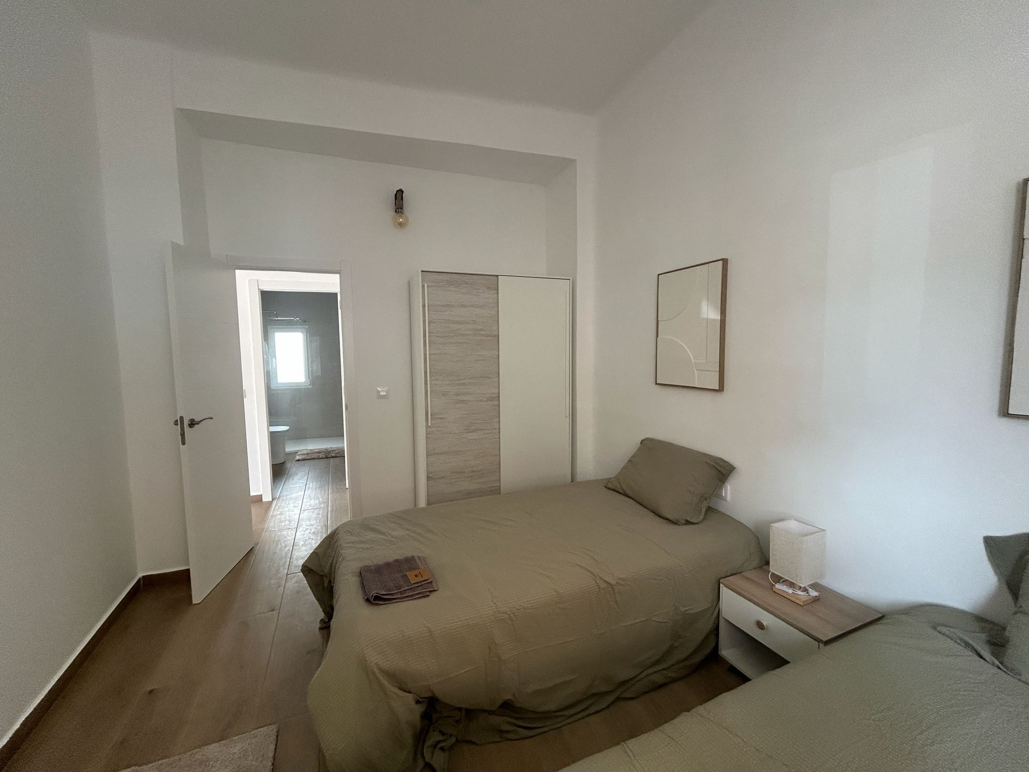 Renoveringen från 2025 har gett bostaden ett helt nytt liv – från golv och väggar till badrum och ytskikt. Resultatet är ett hem som är redo att flyttas in i utan någon som helst extra åtgärd. Luftkonditioneringen ser till att inomhusmiljön alltid är behaglig, och de inbyggda garderoberna erbjuder smart och stilren förvaring.