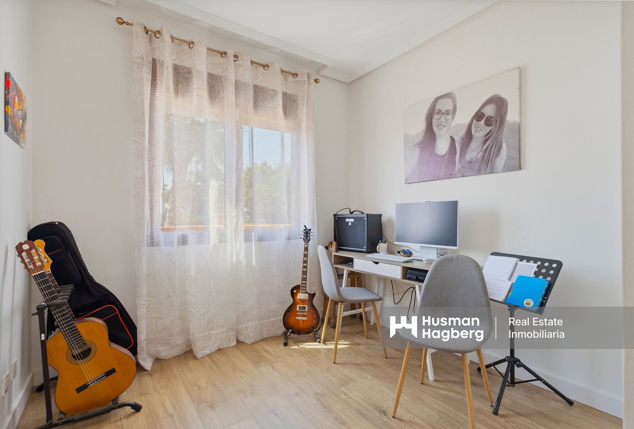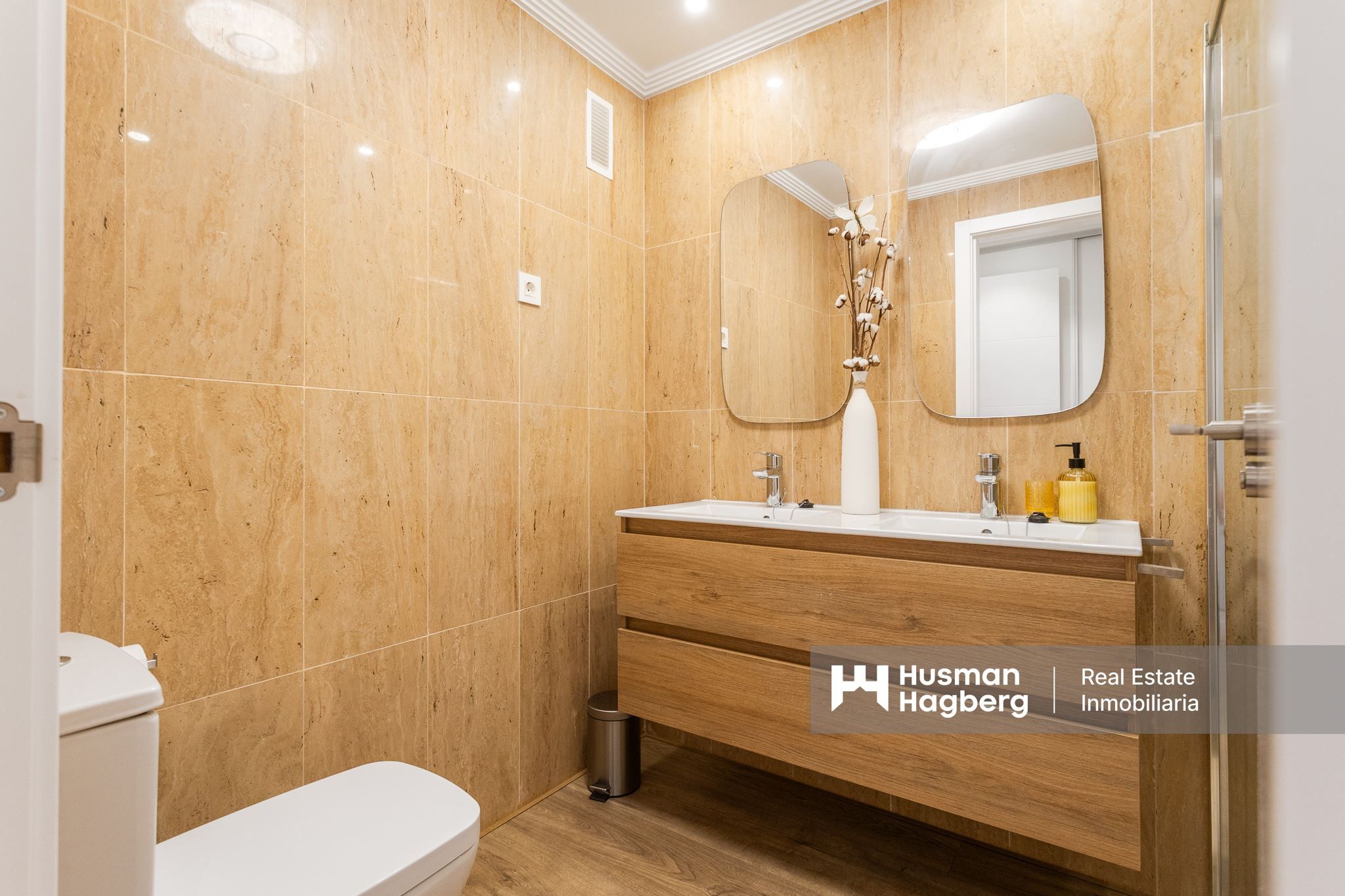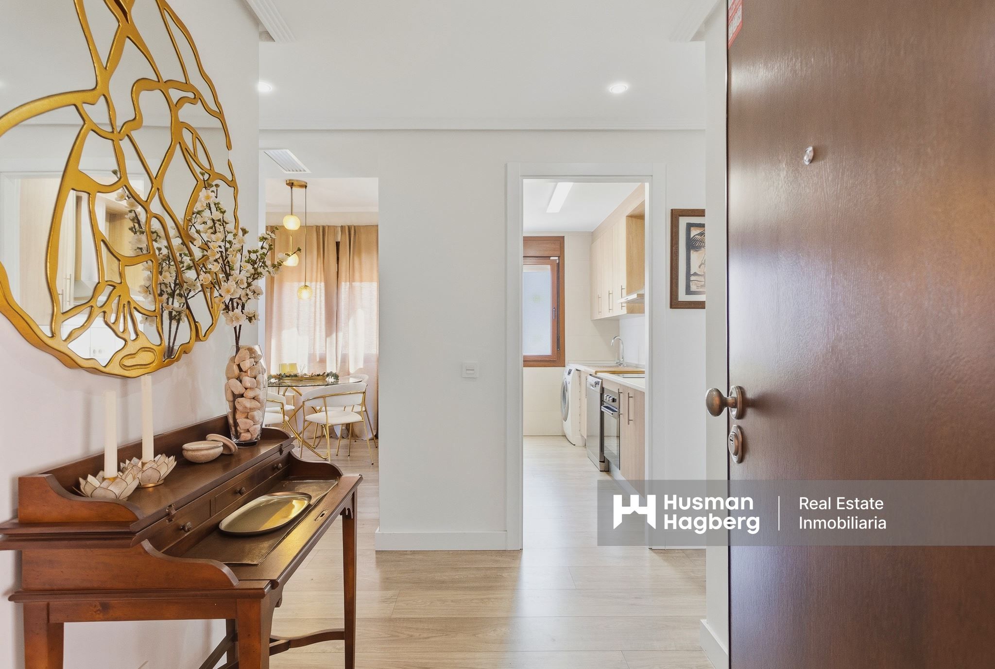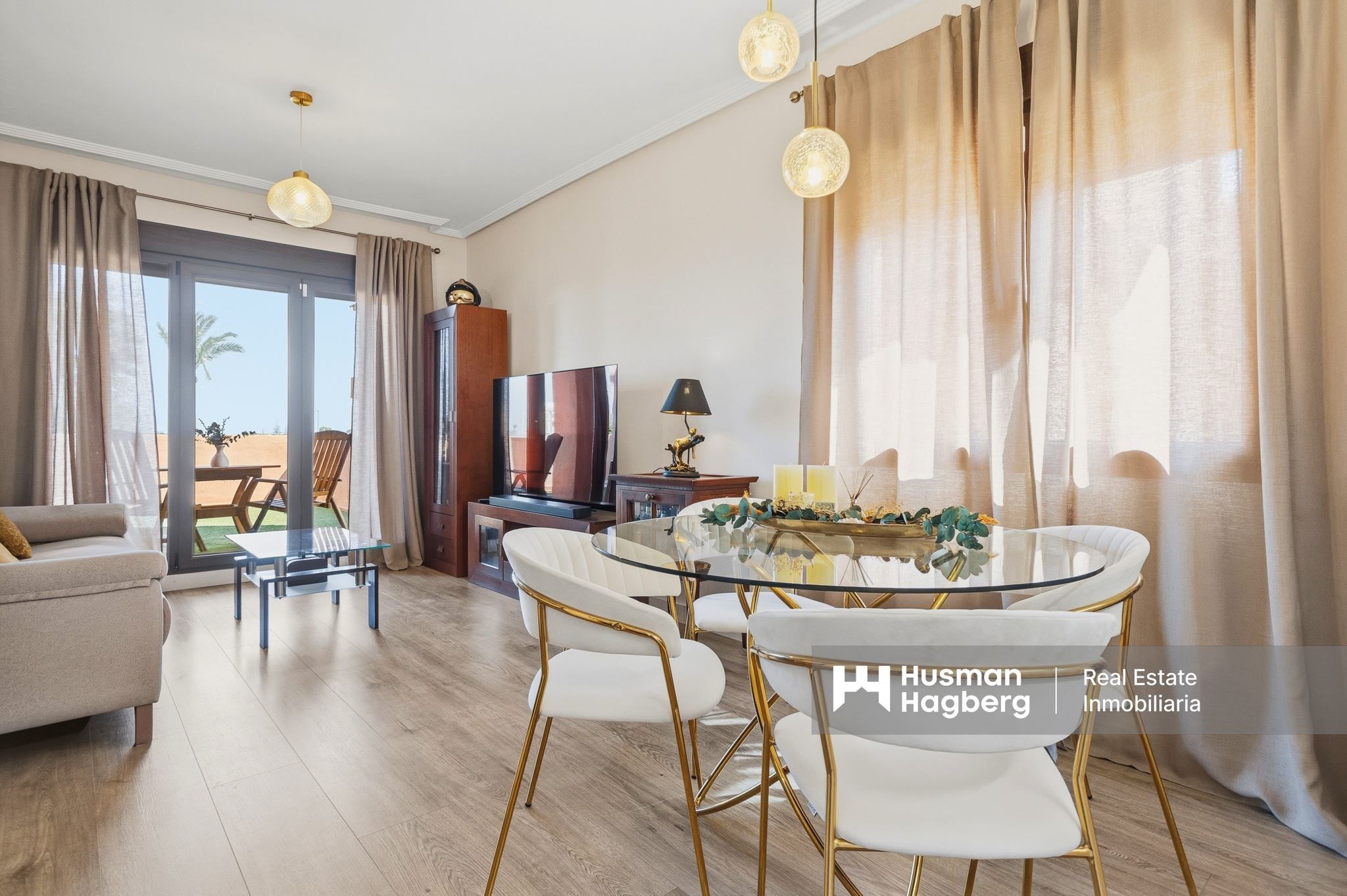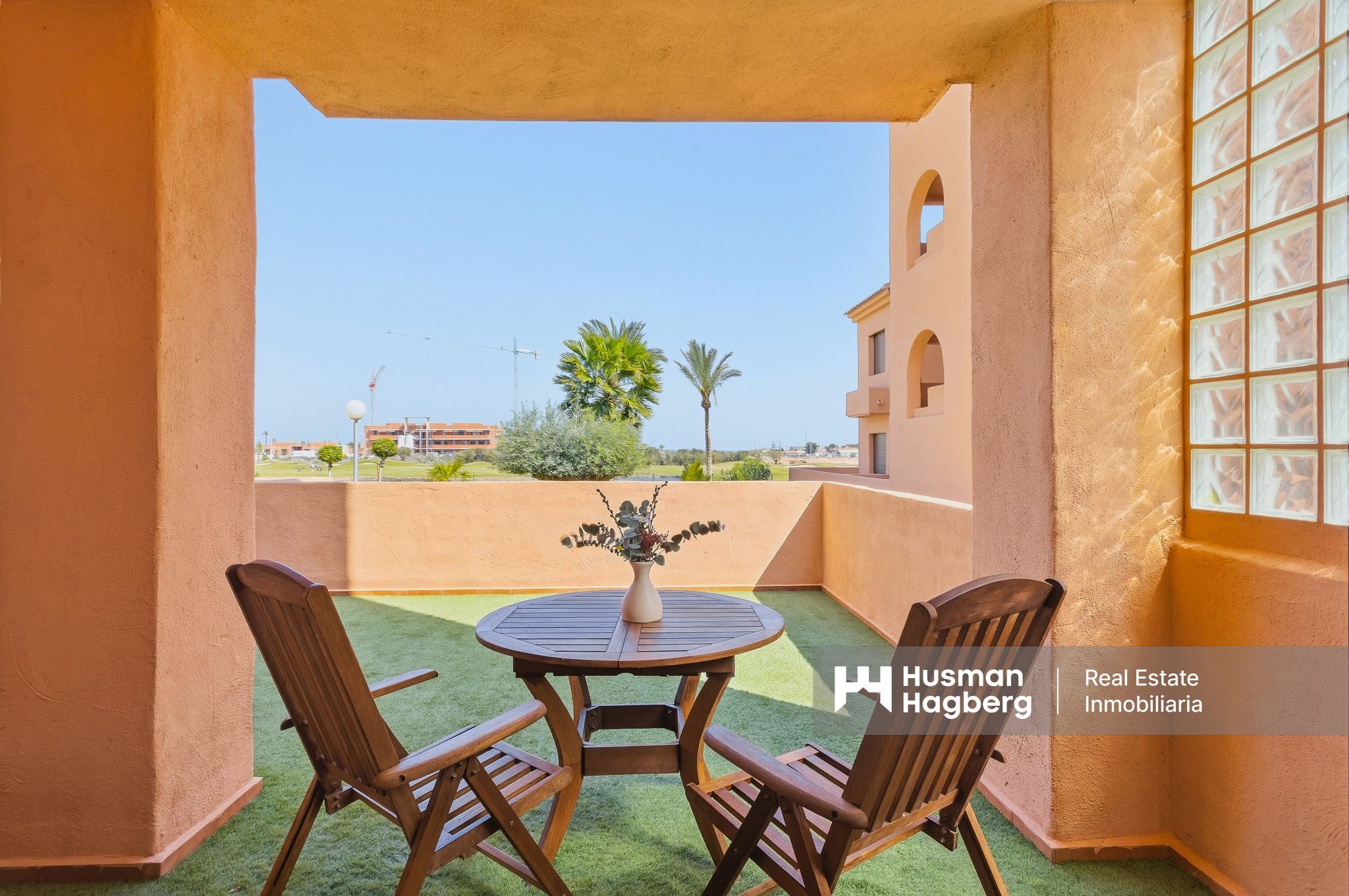 Hemmet öppnar upp mot en stor sydostvänd terrass, en av bostadens verkliga höjdpunkter. Här breder utsikten ut sig över La Serena Golf, det gröna landskapet och det vackra poolområdet som slingrar sig genom trädgårdarna. Den här terrassen blir snabbt hemmets naturliga samlingspunkt – en plats för frukost i solen, långa luncher eller lugna eftermiddagar i en harmonisk miljö.