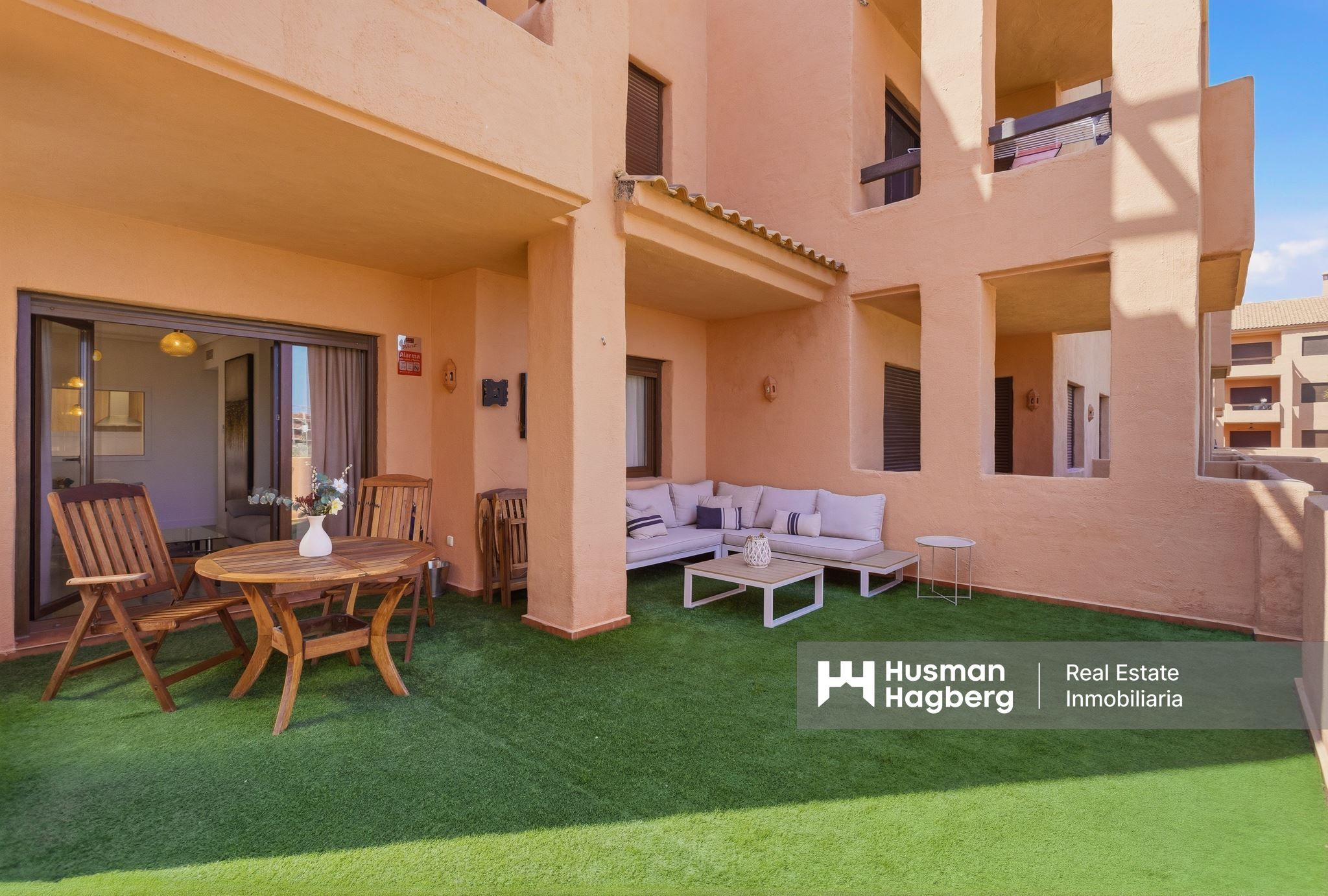 Detta är ett hem för dig som söker rymd, ljus, modern komfort och den där särskilda känslan av att leva nära både golfbanans grönska och havets lugn. En markplanslägenhet med två uteplatser – perfekt för ett soligt liv på Costa Cálida.