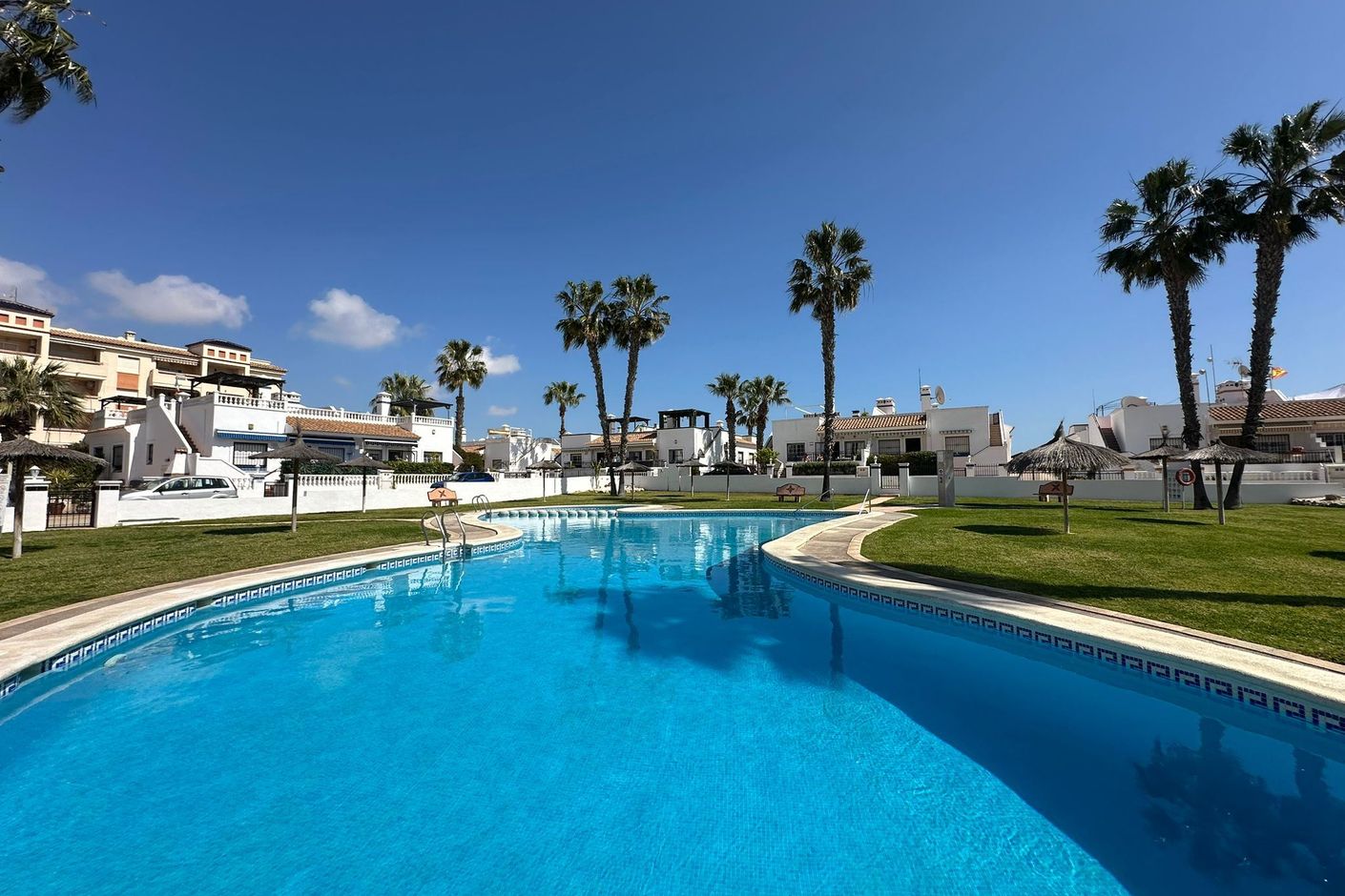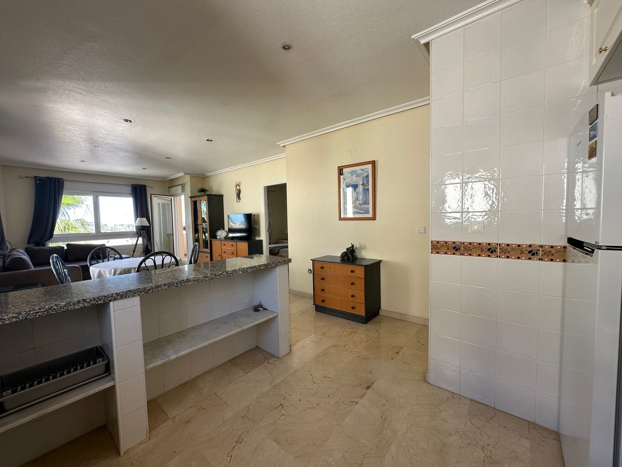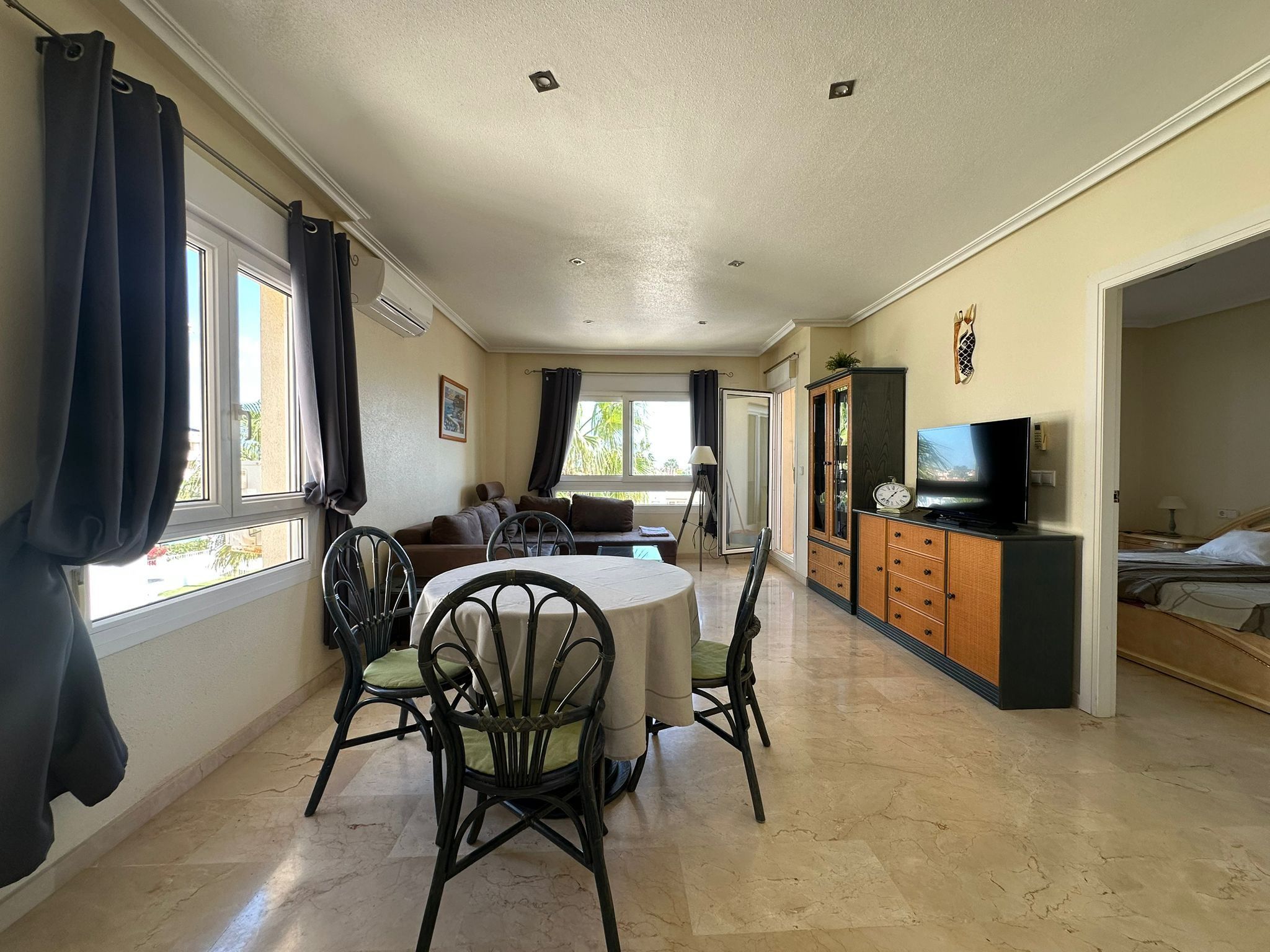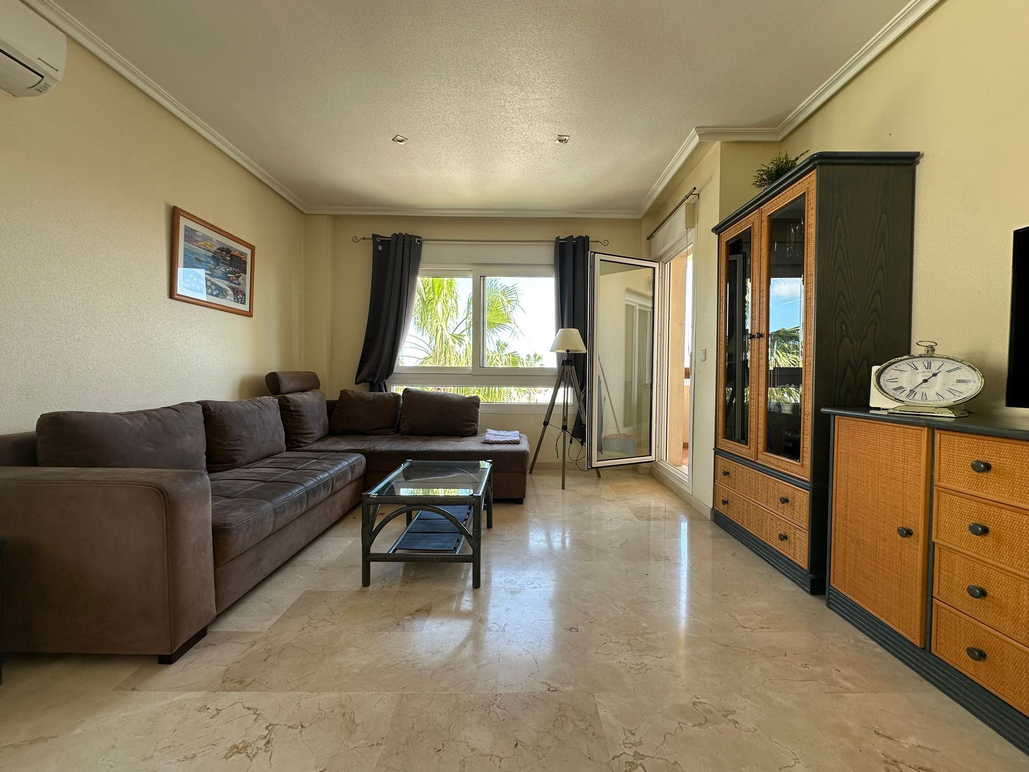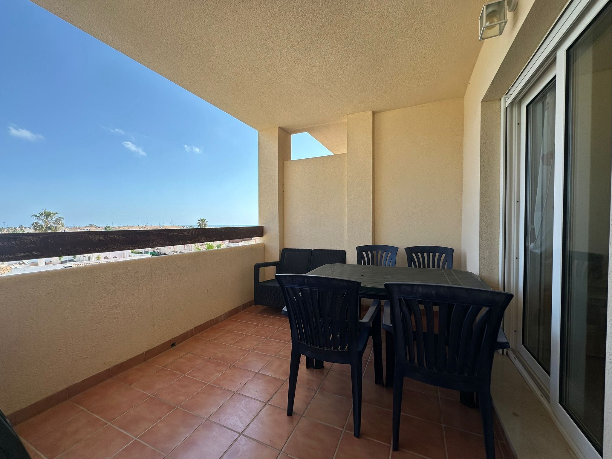 I ett soligt och omtyckt bostadsområde på Orihuela Costa väntar en ljus och välplanerad lägenhet som bjuder på både rymd, komfort och en härlig utsikt mot havet. Här bor du med närhet till allt – från restauranger och caféer till grönområden, promenadstråk och kustens glittrande stränder – samtidigt som hemmet ger en lugn och harmonisk bas för både vardag och ledighet.