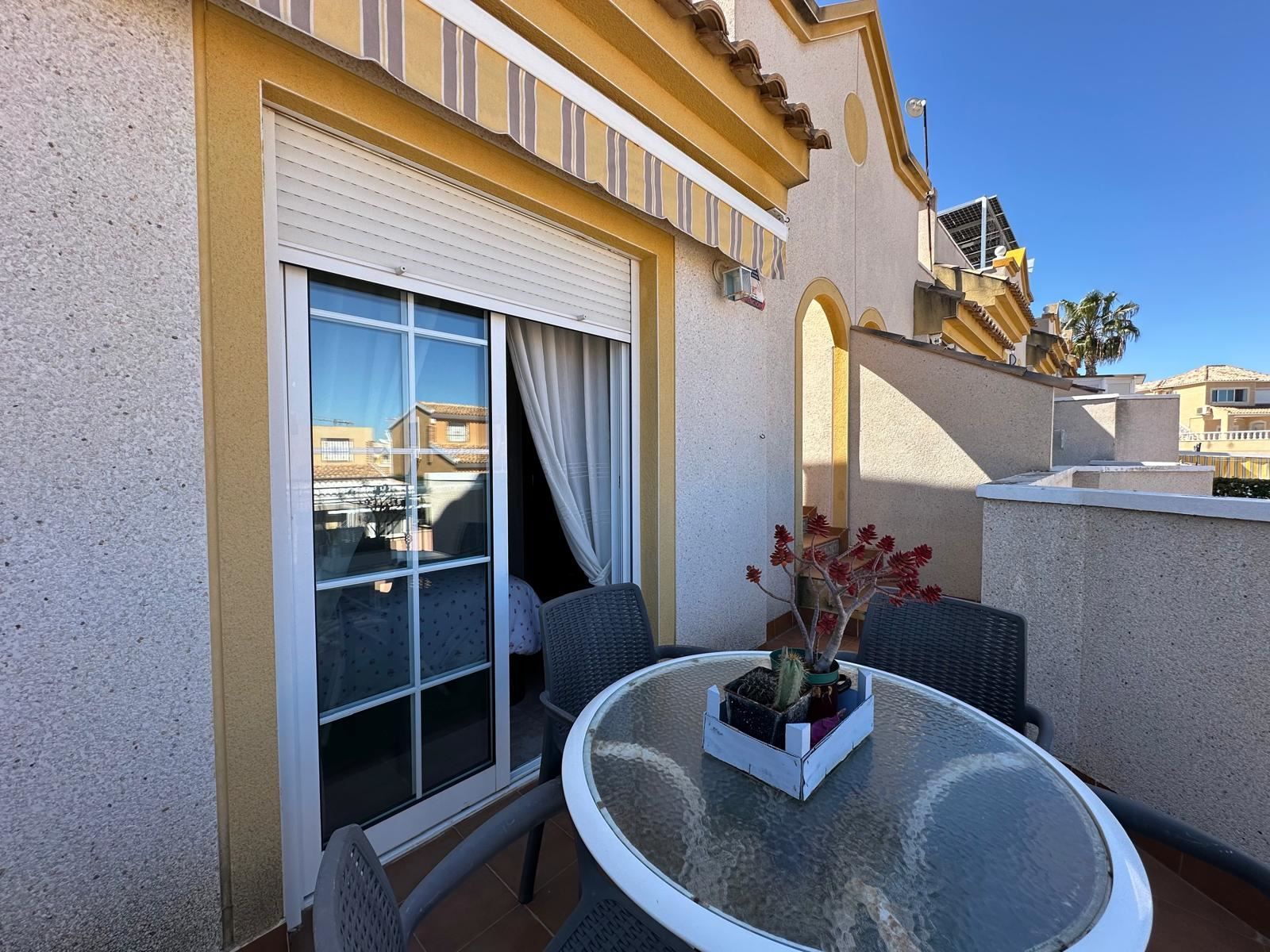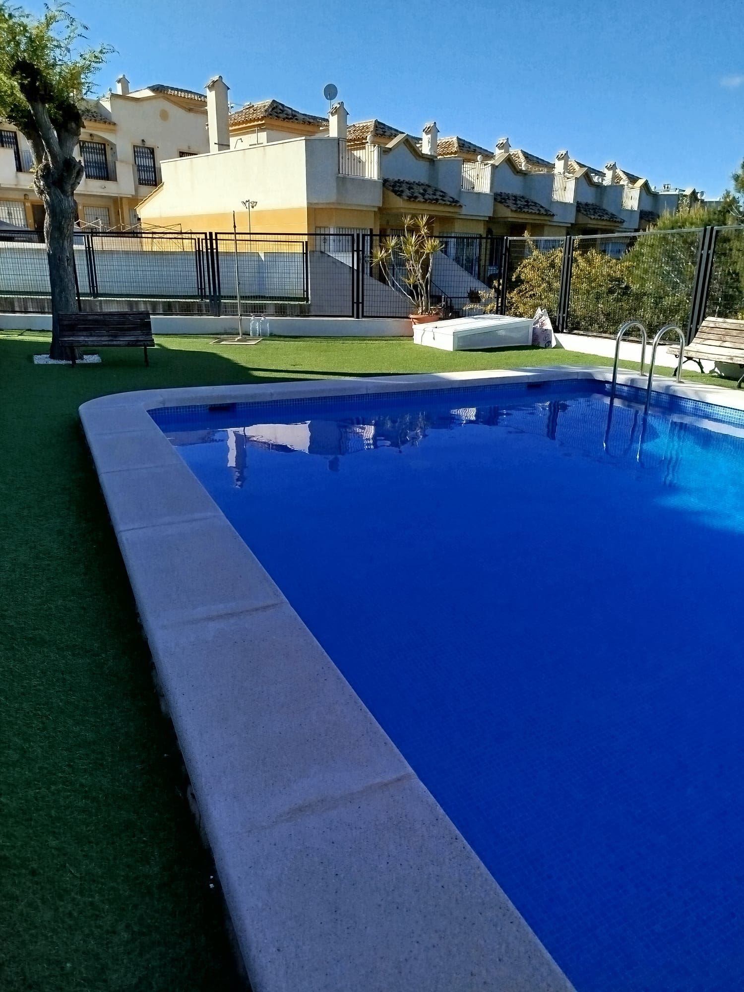 I ett av de mest eftertraktade bostadsområdena i Los Balcones hittar du detta trivsamma radhus med två sovrum och två badrum – ett hem som bjuder in till lugna dagar i solen, kvällar på terrassen och ett vardagsliv nära både service och natur. Här bor du i en välskött miljö där medelhavskänslan är påtaglig från första stund.