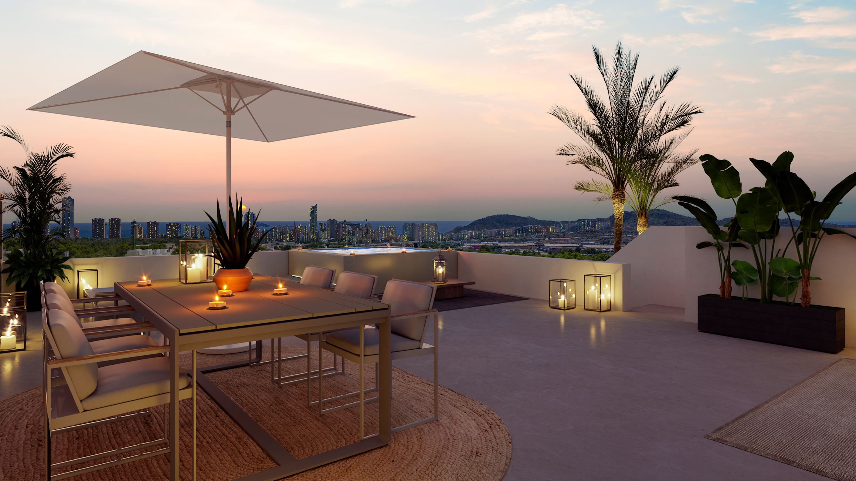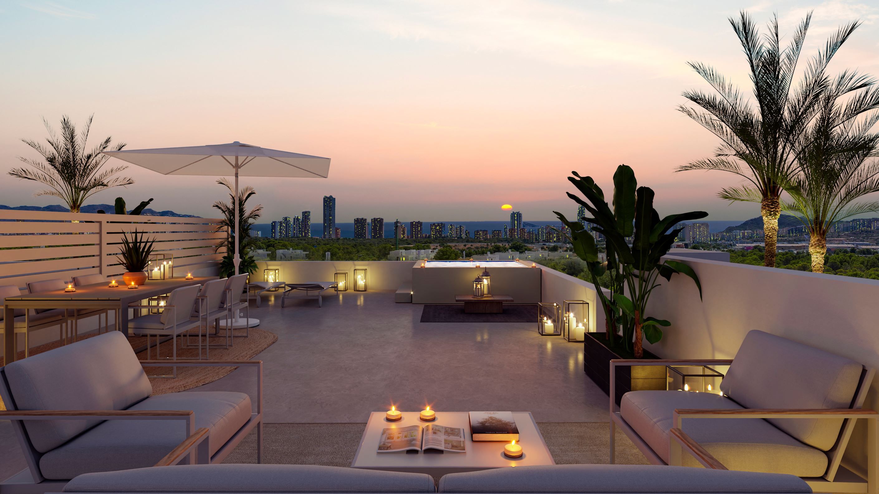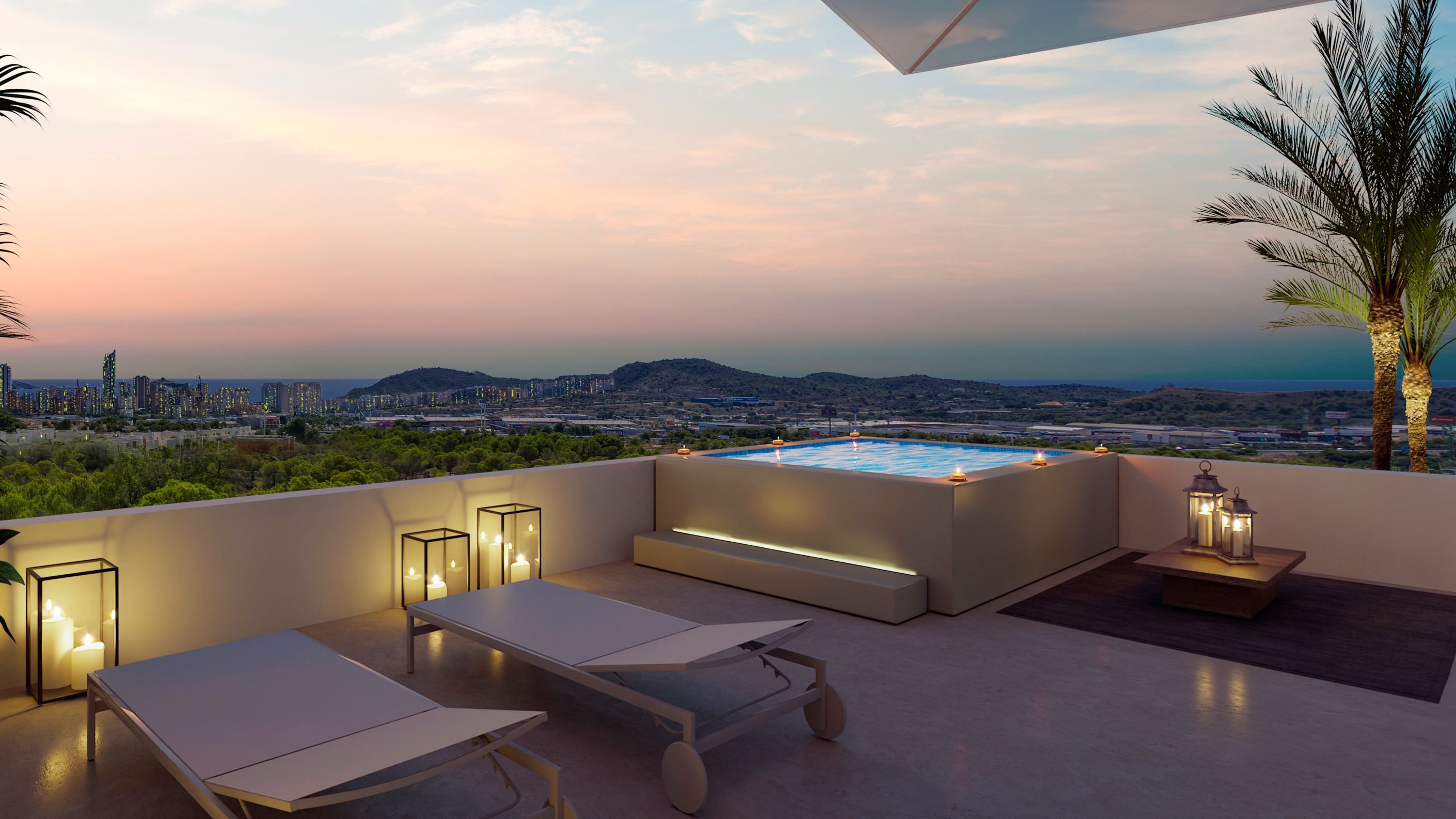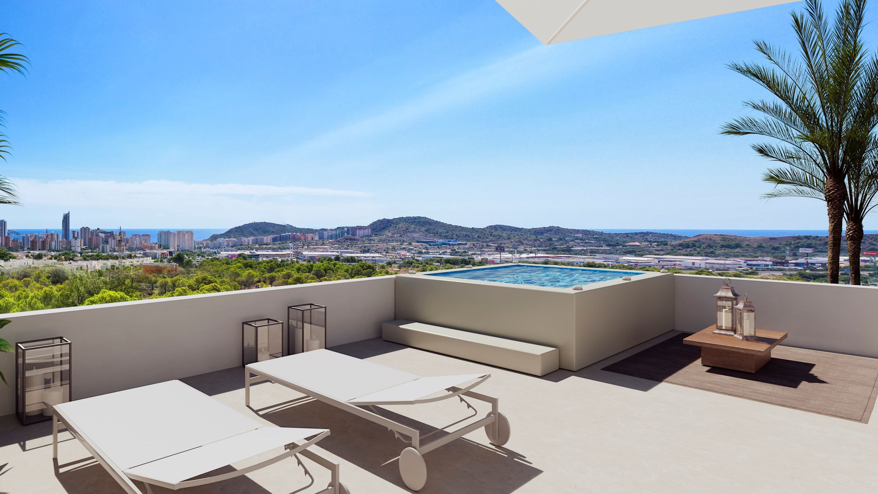 Finestrat, är en exotisk plats nära stranden med turkost vatten och fin sandstrand, omgiven av två klippor, restauranger, barer och butiker. Benidorms finaste och lugnaste sandstrand Poniente, ligger endast ca 1 km bort, och man kan enkelt ta sig dit med flygbussen som går 1-2 ggr i timmen eller med spårvagnen från Alicante som även stannar på La Marina köpcentrumet som är ett av kustens största med butiker, restauranger och barer och kustens största är under uppbyggnad, CC Benidorm. Runtomkring finner vi en mycket välkänd spa resort, Asia Gardens, en Michelin-restaurang och ca tre golfbanor inom en radie av någon kilometer, till exempel Melia Villaitana Golf Club. En av Spaniens mest kända vingårdar, Enrique Mendoza, ligger utanför Benidorm, ca 10 min bort, och erbjuder vinprovningar under hela året. Vidare finns en nöjespark, Terra Mitica, och en vattenpark, Aqualandia , i närheten, vilket lockar en stor mängd turism och besökare varje år. Trevliga events i Benidorm är till exempel den årliga musikfestivalen Low Festival och de populära kabaré-showerna med middag på Benidorm Palace.