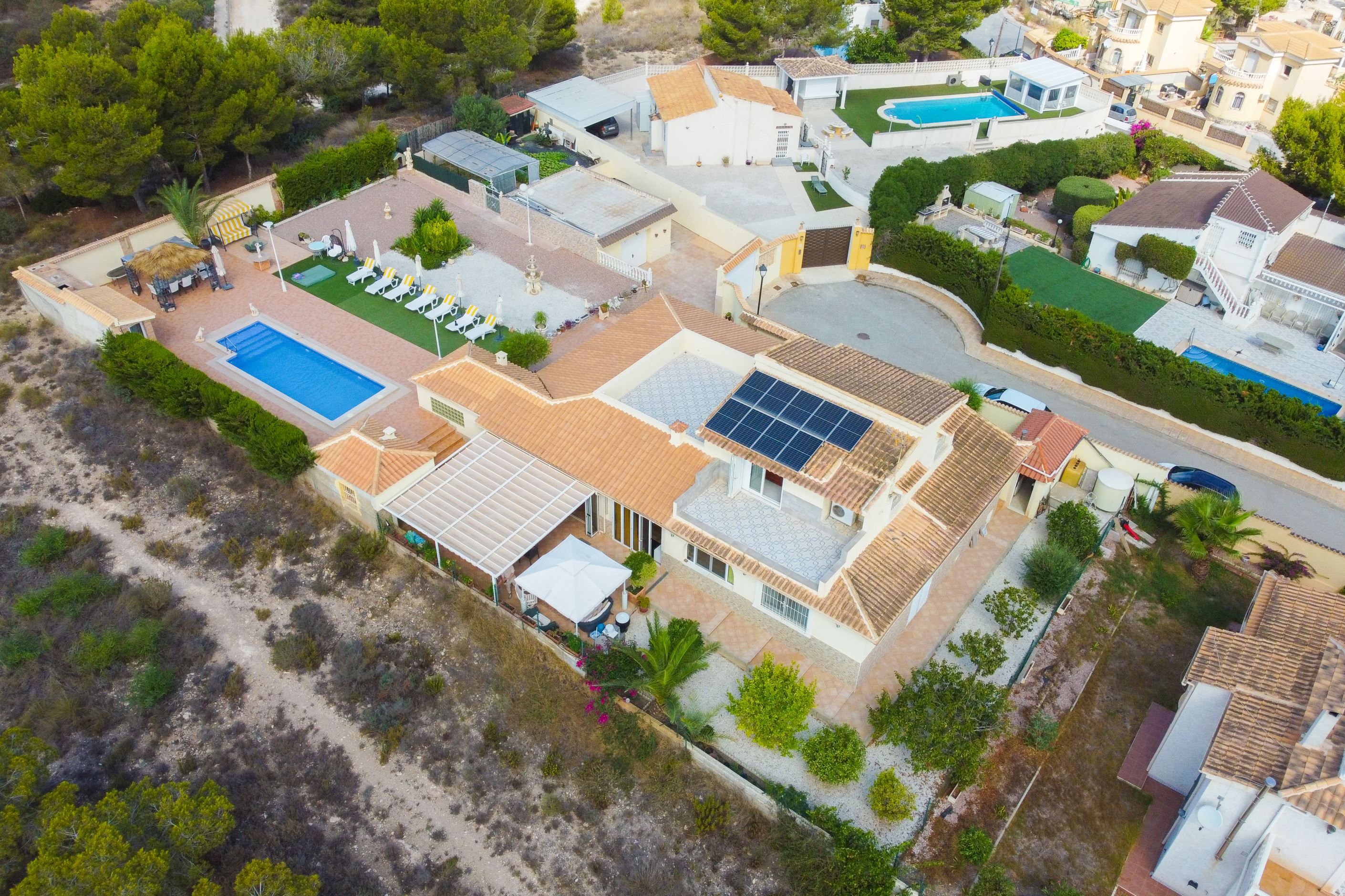 Välkommen till denna unika villa med stor tomt, privat pool och ett boende utöver det vanliga, perfekt beläget i ett lugnt och attraktivt område på södra Costa Blanca. Med en tomt om ca 1 125 kvm och en boyta på ca 271 kvm, erbjuder denna fastighet gott om utrymme, avkoppling och stil – oavsett om du letar efter ett permanent boende, ett semesterparadis eller en plats att samla hela familjen.