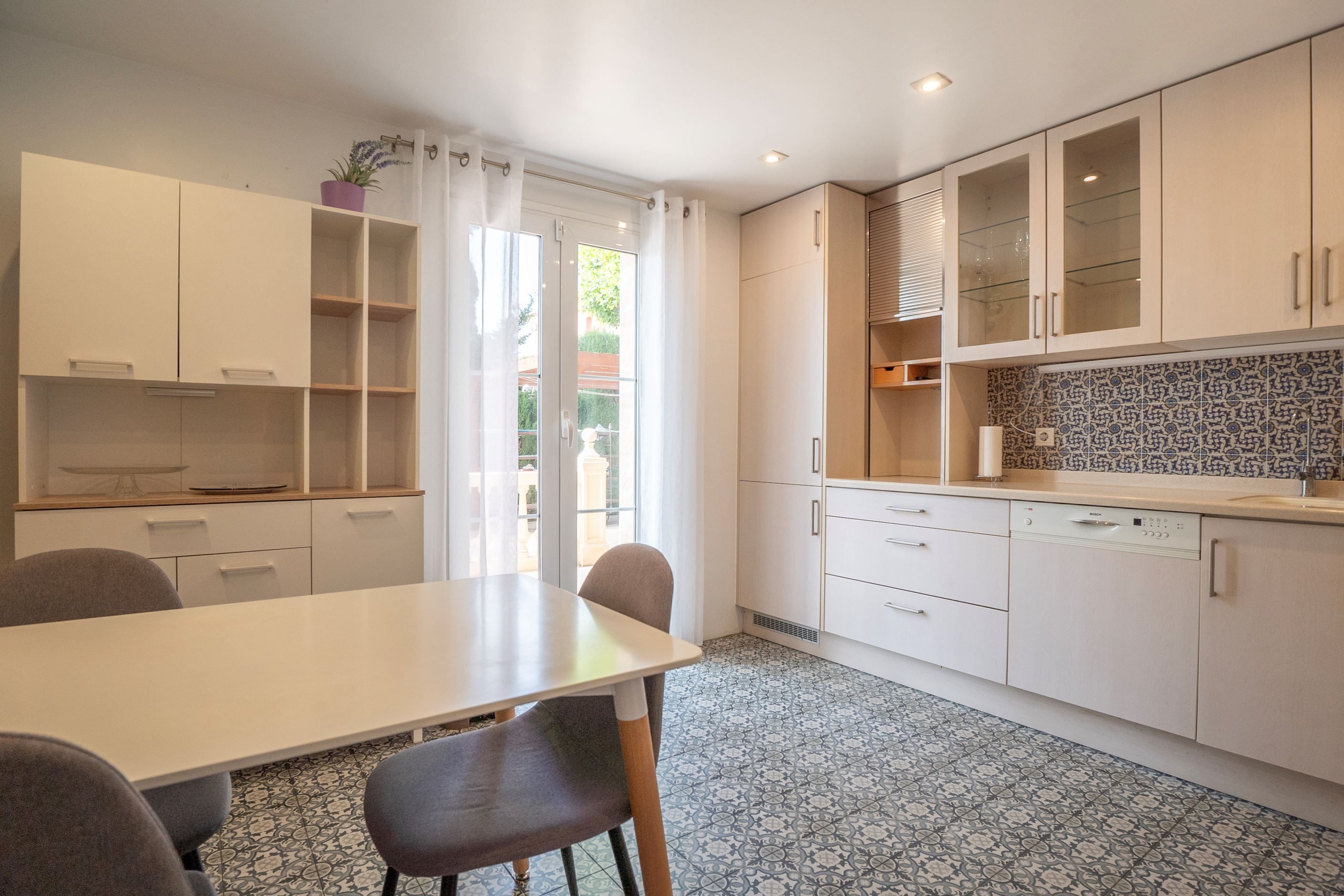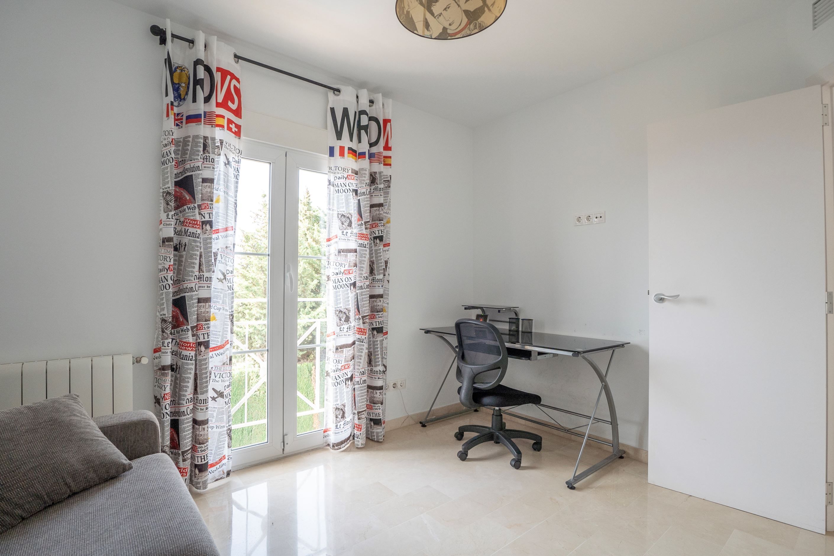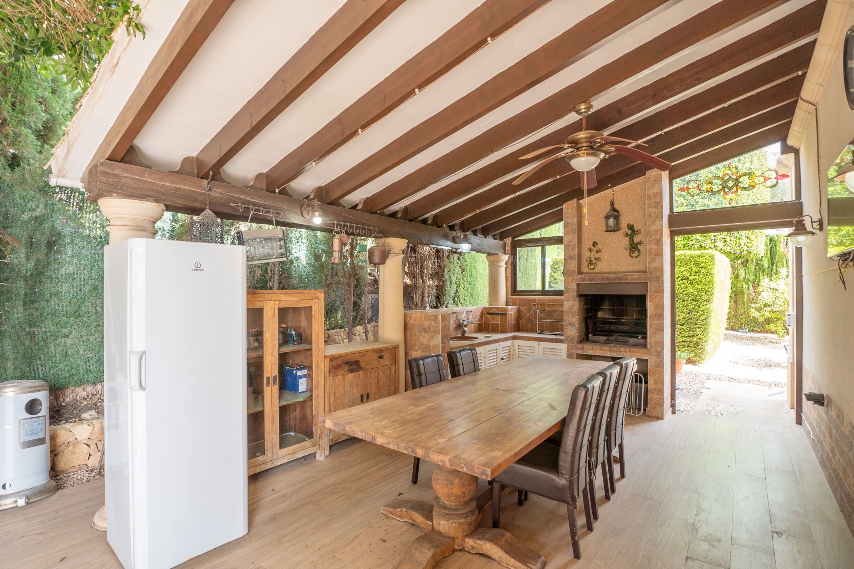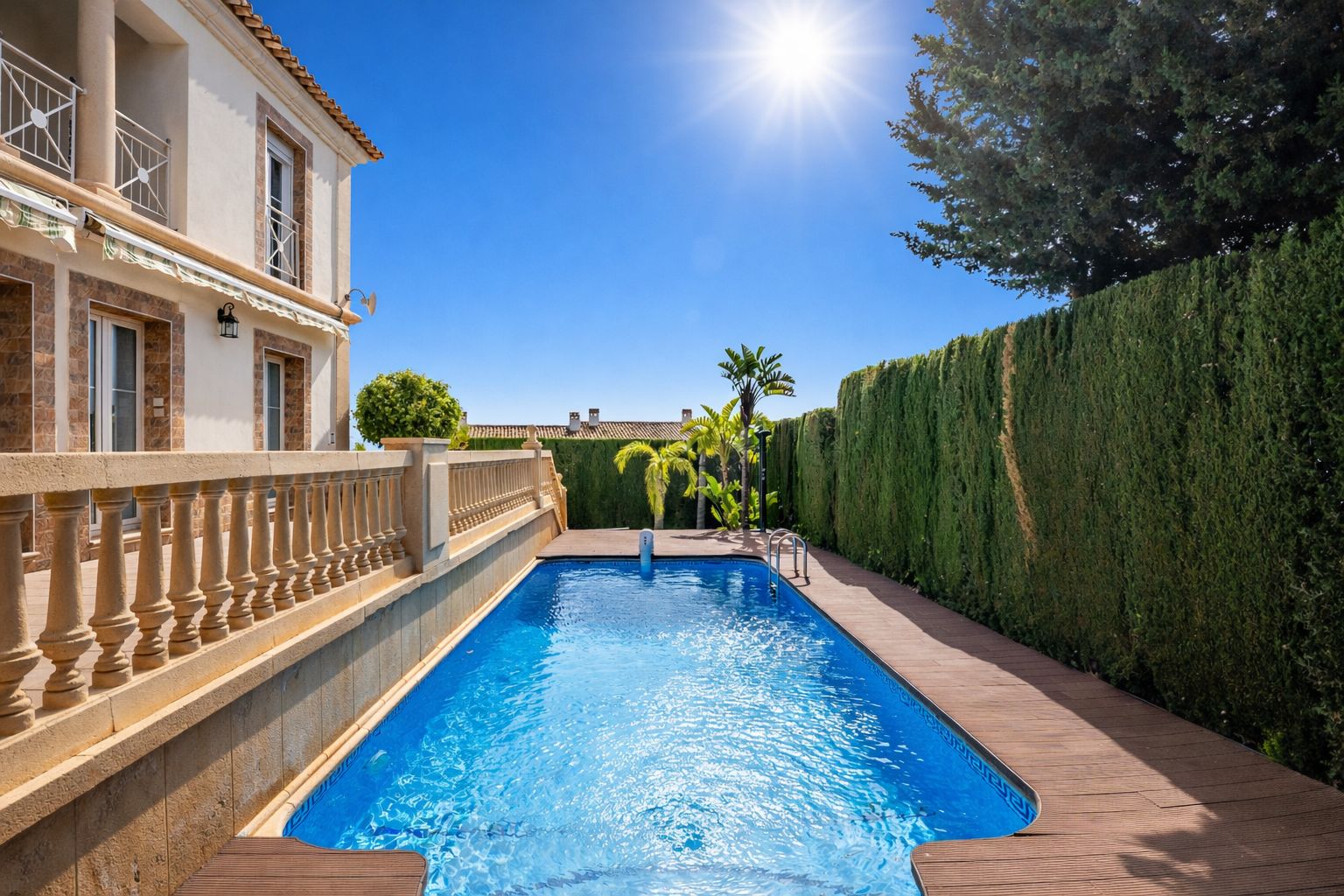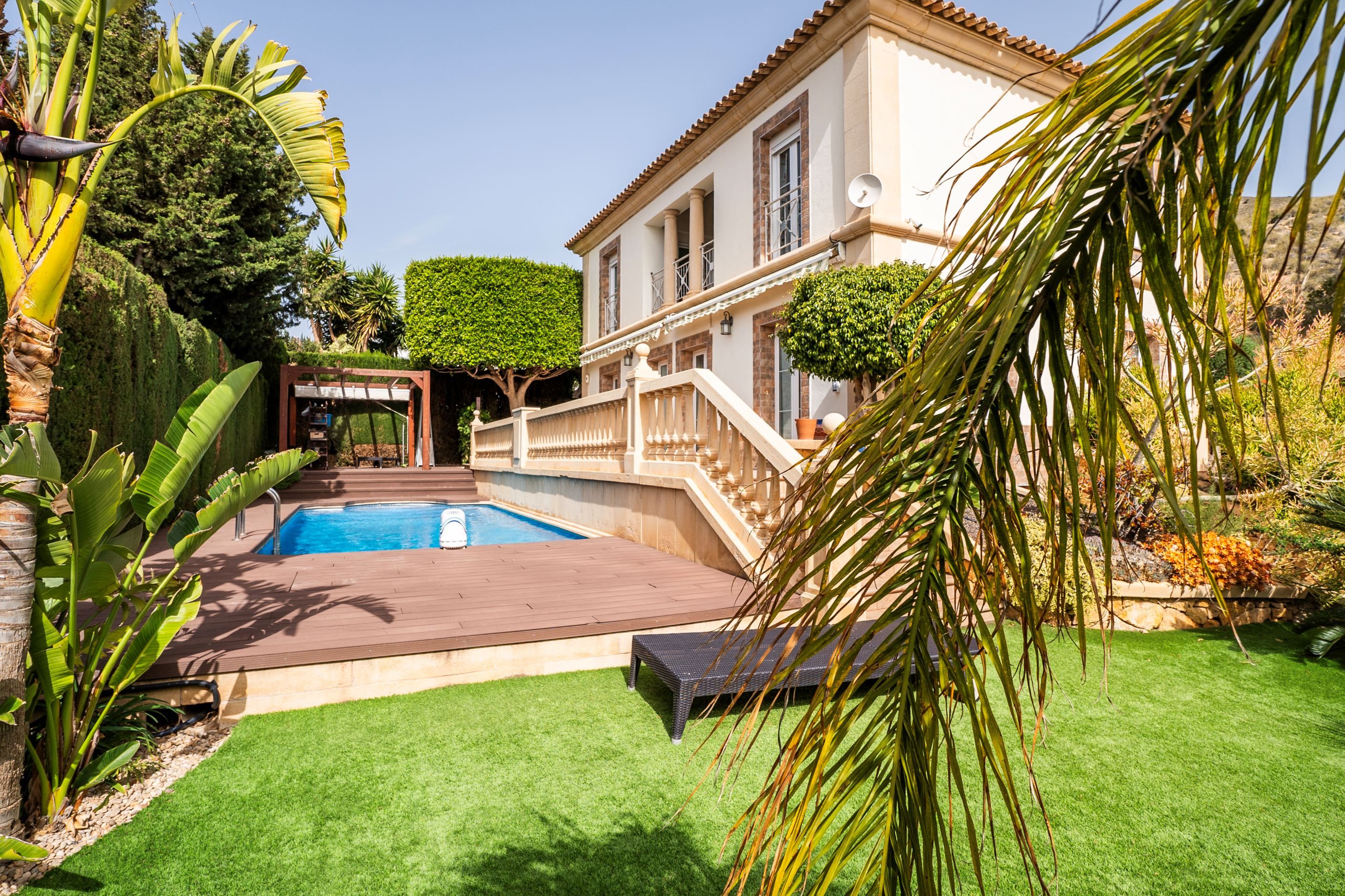 Utomhus finns en välskött trädgård, privat pool med motströmssystem, pergola och utekök, perfekt för att njuta av det medelhavska klimatet. Fastigheten har även garage för två bilar samt utrustning som larm, övervakningssystem och gasuppvärmning.