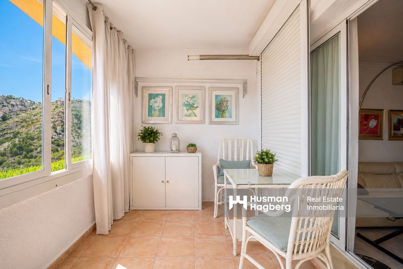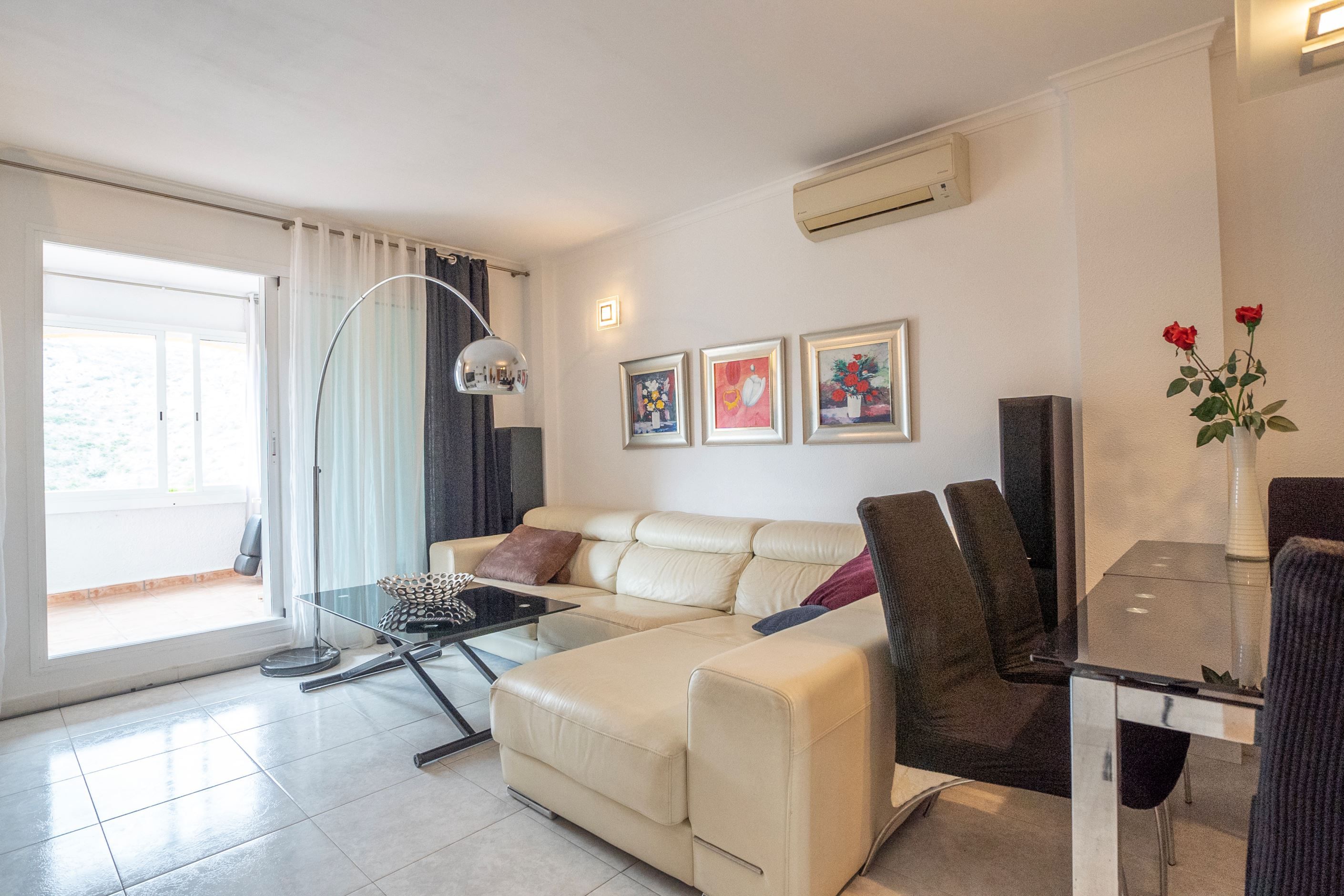 Bostaden har två sovrum, ett badrum, ett fullt utrustat öppet kök samt ett ljust vardagsrum med direkt tillgång till en delvis täckt terrass med öppna vyer över dalen. Planlösningen är funktionell och bekväm, idealisk som permanentboende eller semesterbostad.