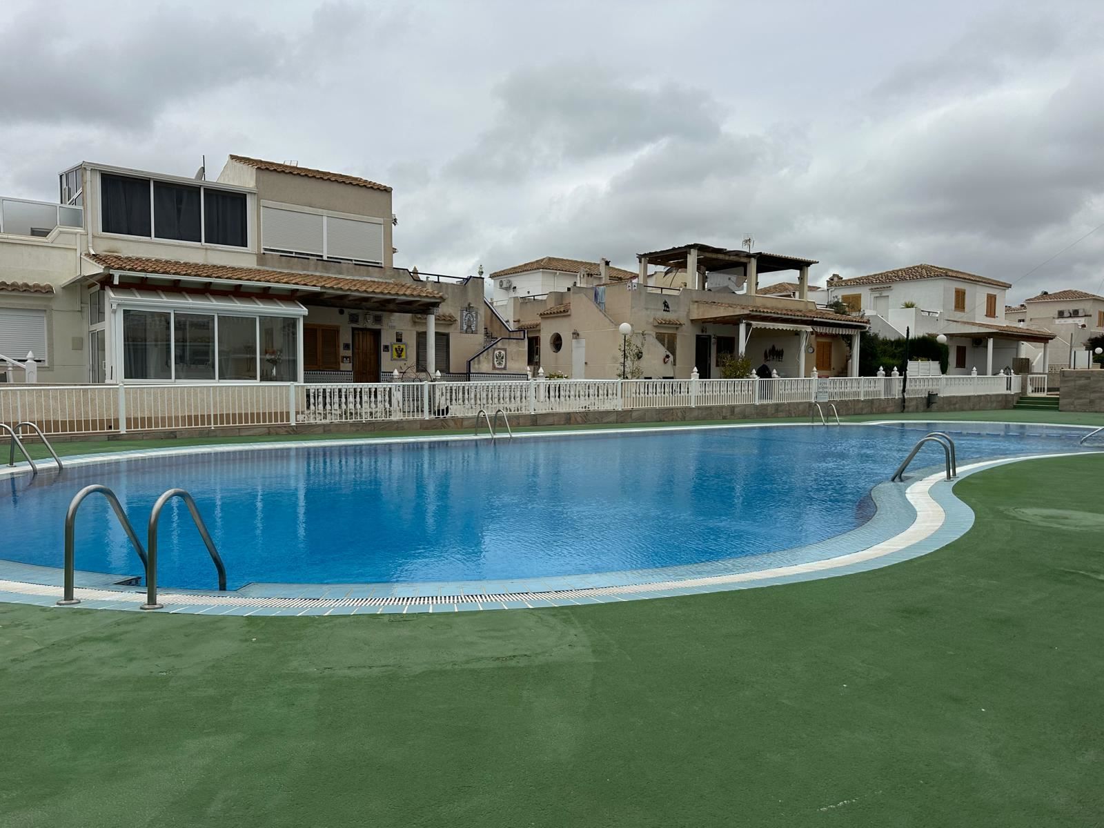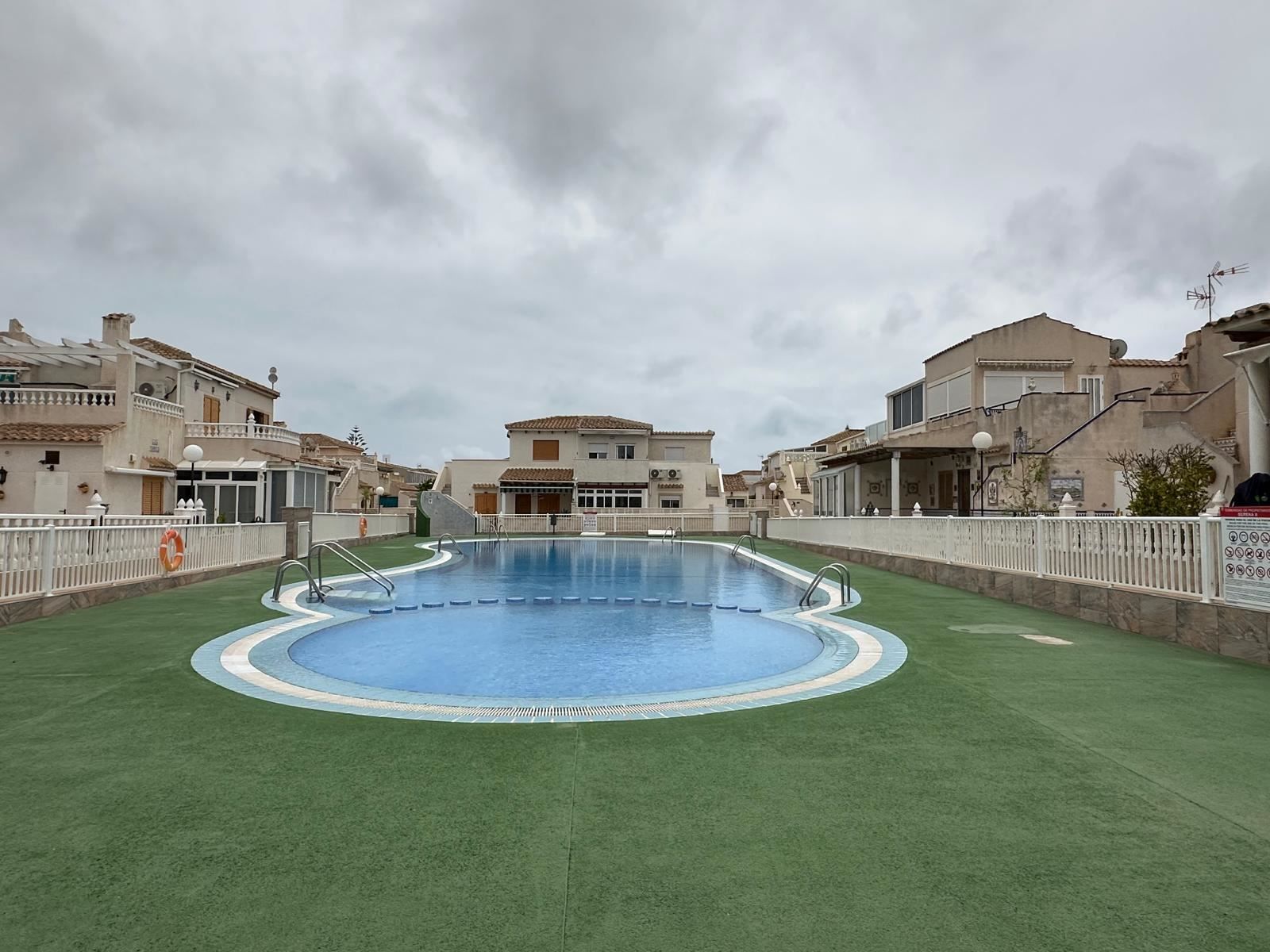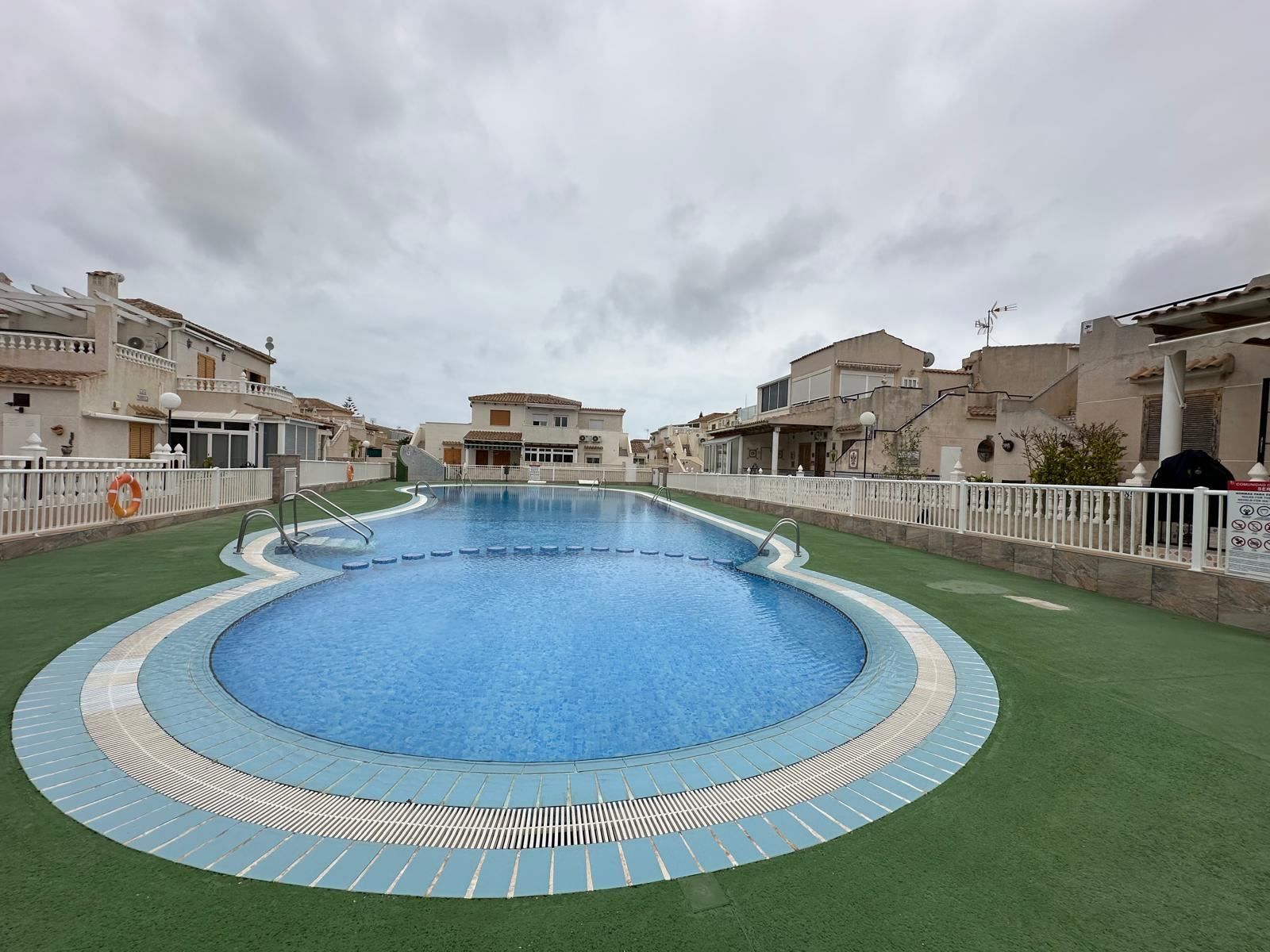 Trivsamt radhus med grönskande omgivning, poolområde och parkering