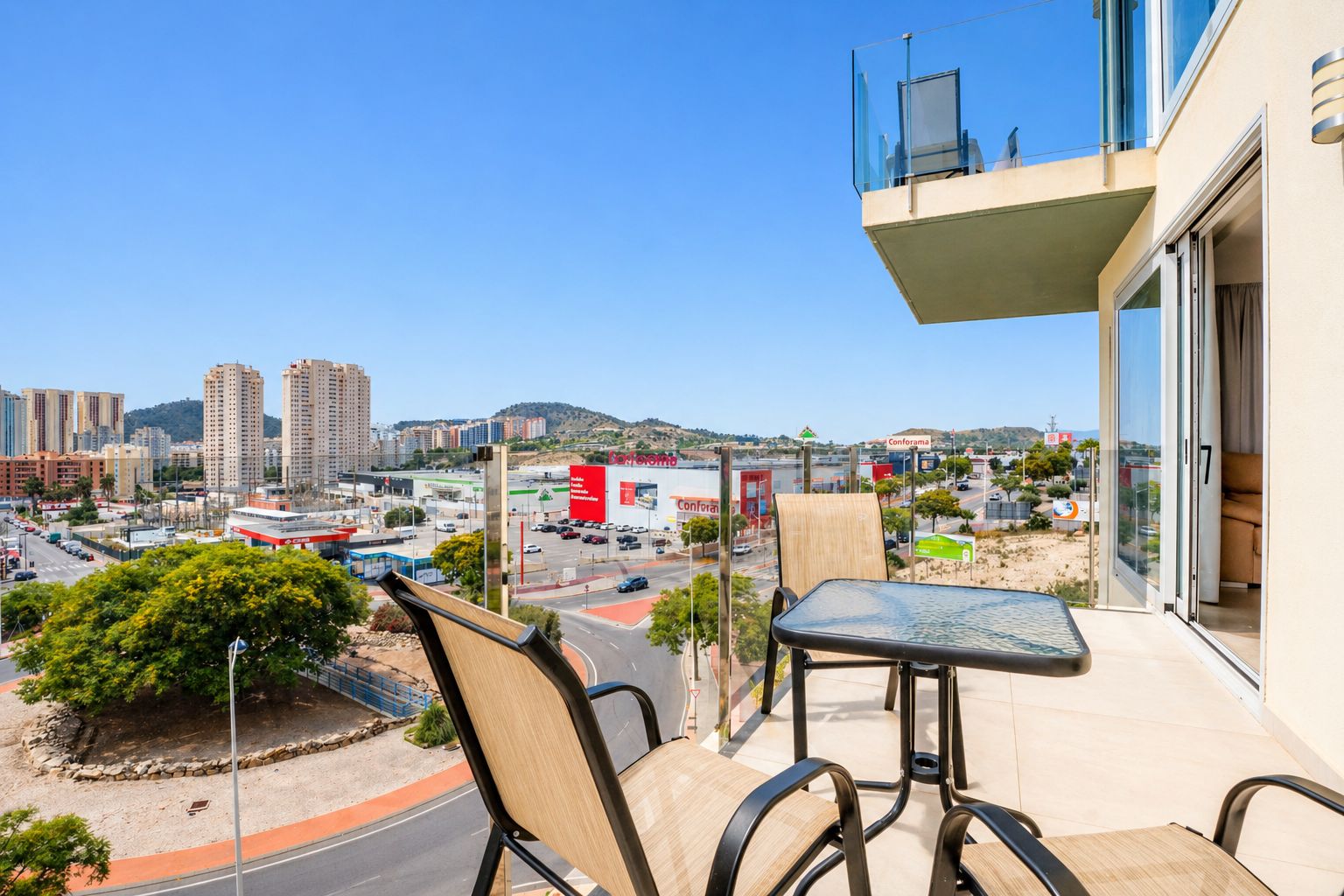 Finestrat, är en exotisk plats nära stranden med turkost vatten och fin sandstrand, omgiven av två klippor, restauranger, barer och butiker. Benidorms finaste och lugnaste sandstrand Poniente, ligger endast ca 1 km bort, och man kan enkelt ta sig dit med flygbussen som går 1-2 ggr i timmen eller med spårvagnen från Alicante som även stannar på La Marina köpcentrumet som är ett av kustens största med butiker, restauranger och barer och kustens största är under uppbyggnad, CC Benidorm. Runtomkring finner vi en mycket välkänd spa resort, Asia Gardens, en Michelin-restaurang och ca tre golfbanor inom en radie av någon kilometer, till exempel Melia Villaitana Golf Club. En av Spaniens mest kända vingårdar, Enrique Mendoza, ligger utanför Benidorm, ca 10 min bort, och erbjuder vinprovningar under hela året. Vidare finns en nöjespark, Terra Mitica, och en vattenpark, Aqualandia , i närheten, vilket lockar en stor mängd turism och besökare varje år. Trevliga events i Benidorm är till exempel den årliga musikfestivalen Low Festival och de populära kabaré-showerna med middag på Benidorm Palace.