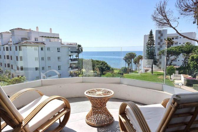 Exklusiv strandnära takvåning med panoramautsikt över hav och berg i